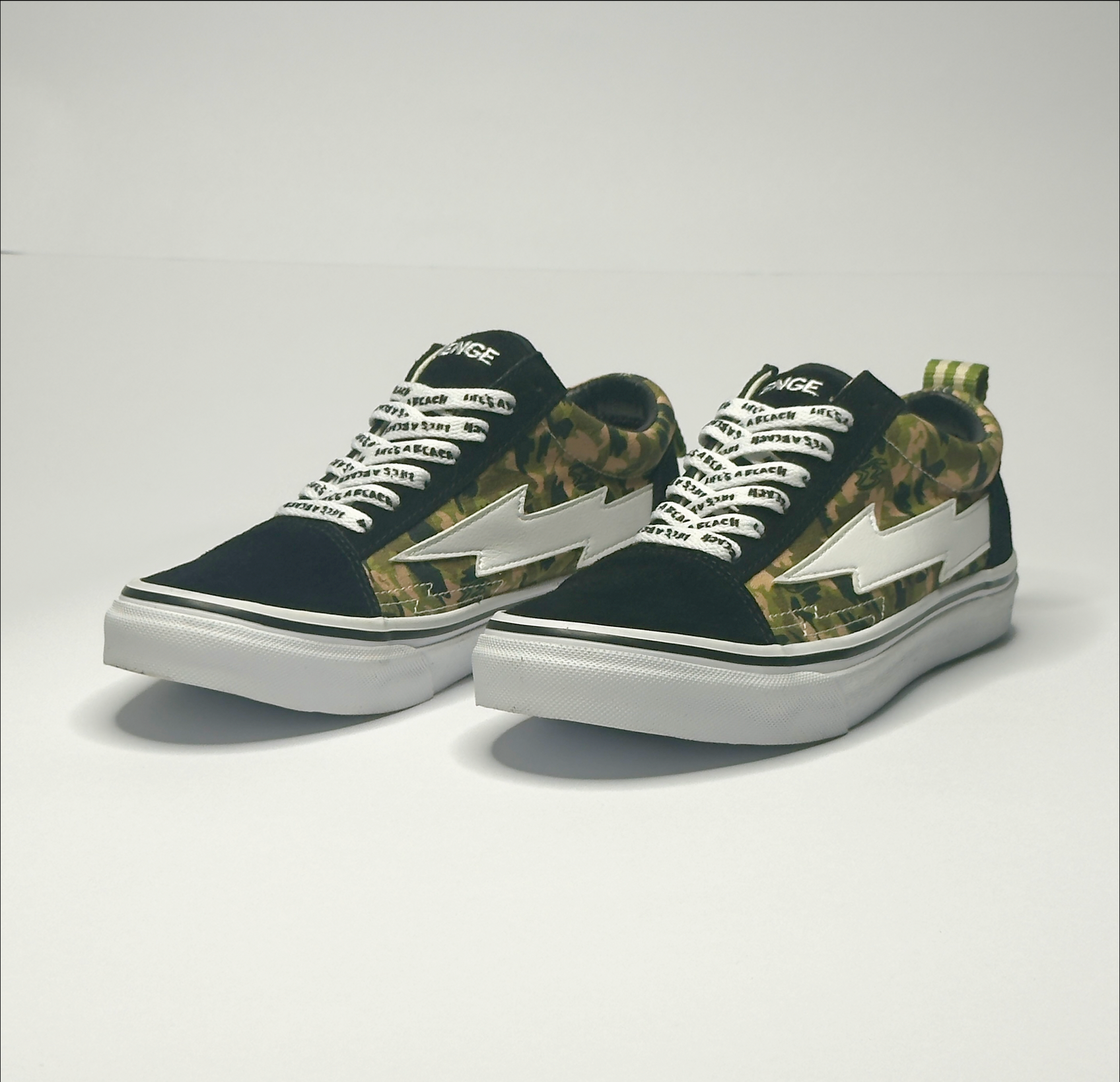 Inspiración militar, ejecución urbana. El modelo Green Camouflage es la respuesta de Revenge x Storm a la necesidad de una pieza robusta pero estilizada. Al combinar el patrón de camuflaje clásico con los materiales premium de la marca,esta zapatilla se posiciona como el "must-have" para quienes dominan el asfalto con una actitud táctica y disruptiva.