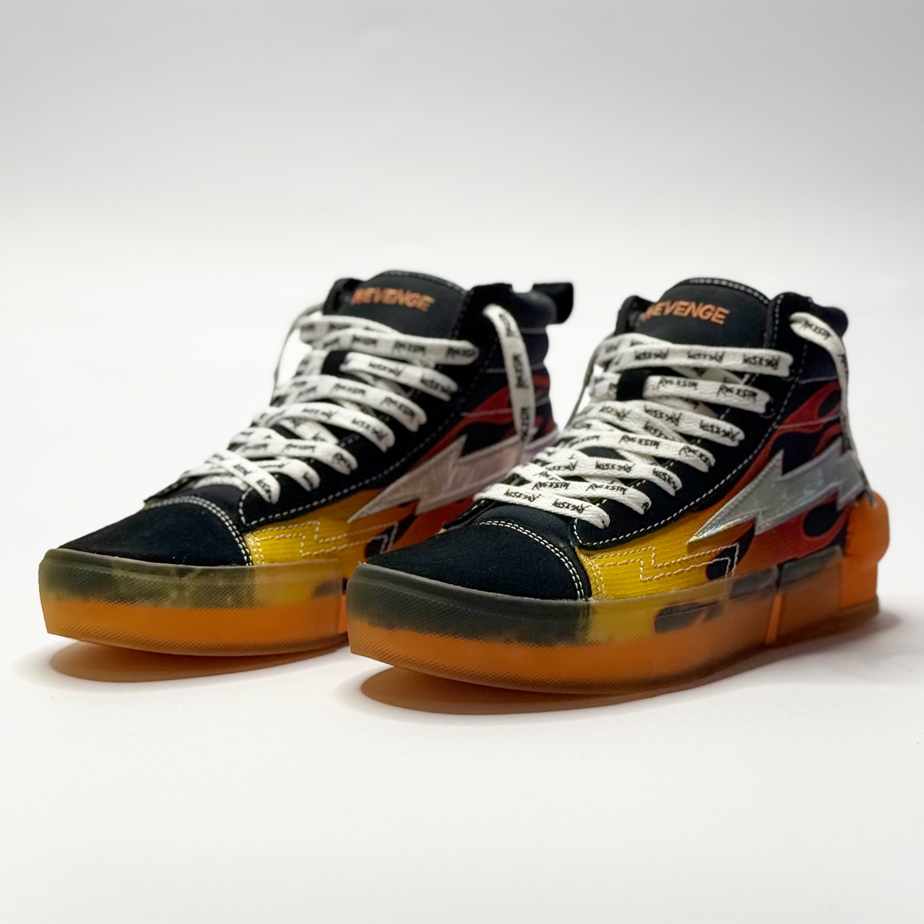 El fuego se encuentra con el rayo. Esta edición especial de Revenge x Storm eleva el diseño icónico de Ian Connor a un nuevo nivel de complejidad visual. Diseñadas para quienes no temen ser el centro de atención, las "Electric Flame" combinan la rebeldía del skateboarding clásico con acabados de vanguardia.